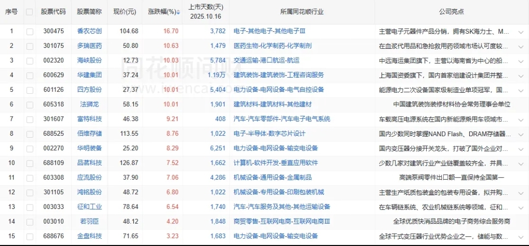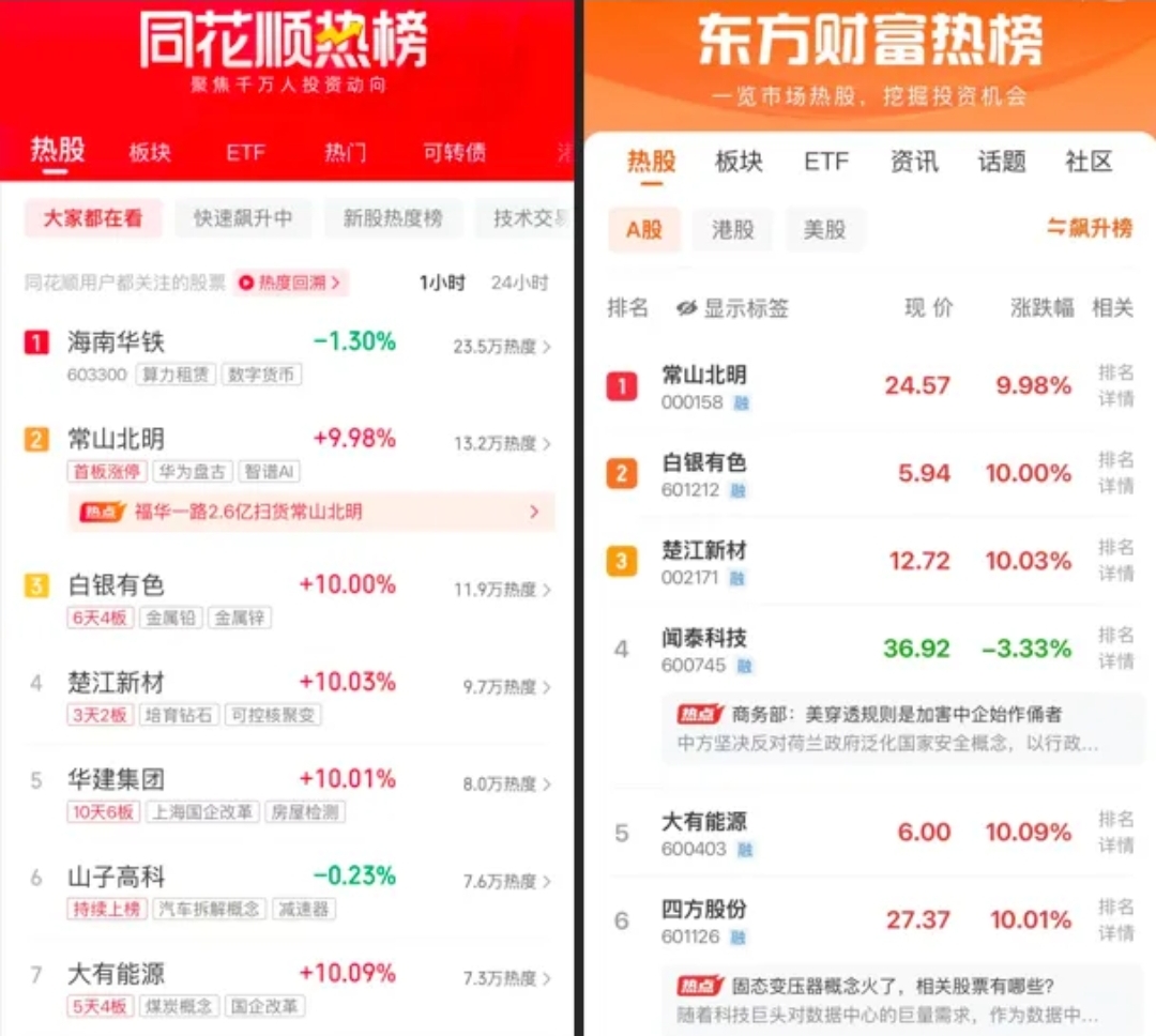 同花顺热榜:海南华铁、常山北明、白银有色、楚江新材、华建集团