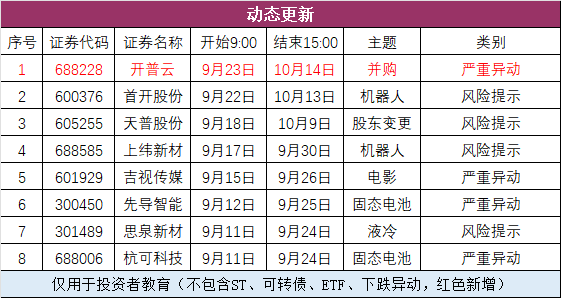 四、异动公告