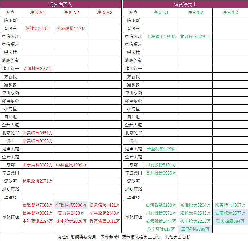 No.5 机构席位和游资动向