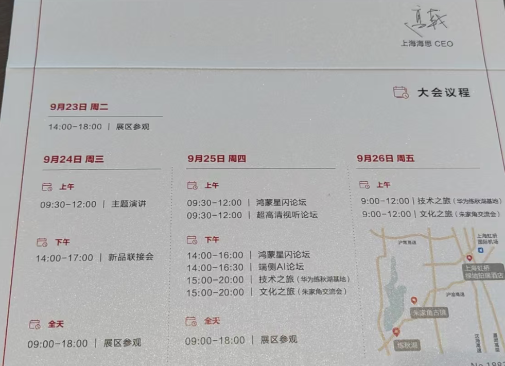 2025上海海思创新大会将于9月24日-25日举行,设有新品联接会、星闪论坛、端侧 AI 论坛等多个专题活动。大会将重点分享海思新品、鸿蒙星闪、超高清视听等技术和产品,进一步强化端侧 AI 和星闪生态的展示,也会强化对代工、代理及分销伙伴的开放协作。(首次公开举办,此前为闭门会议)