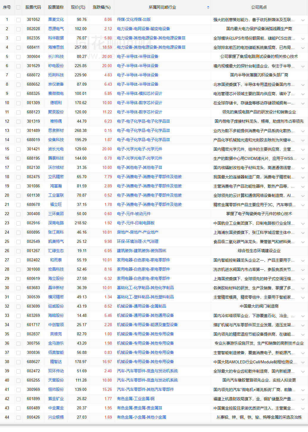 同花顺热榜:张江高科、凯美特气、立讯精密、山子高科、和而泰